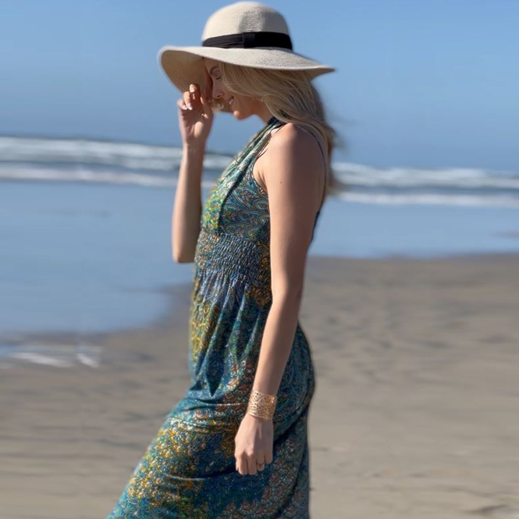 Waist: From the center back neckline, measure 15 inches straight down. At that point, measure straight across the dress from one side to the other. This flat width is your waist measurement (double for full body circumference).
