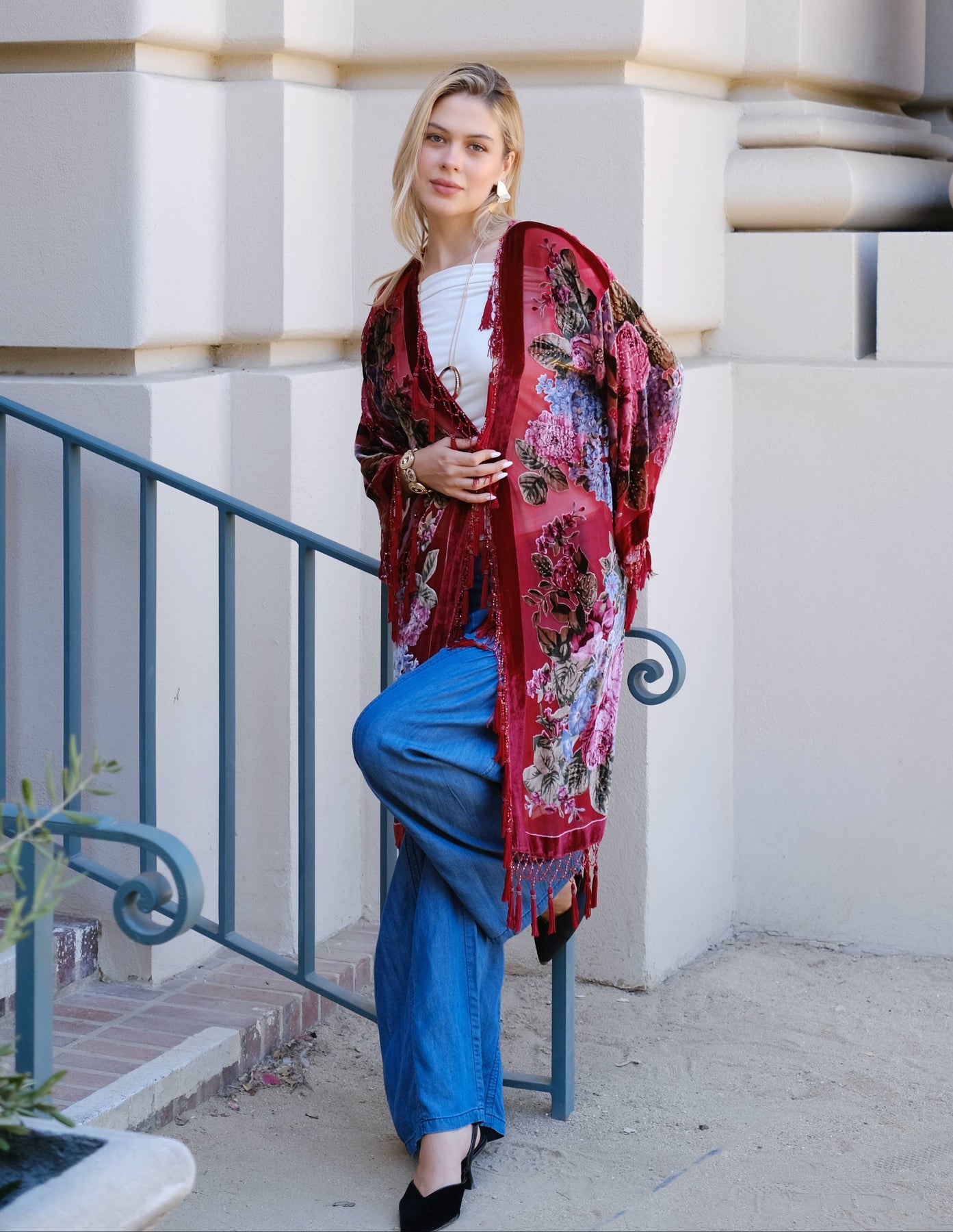 Bgdy Floral Silk Velvet Kimono