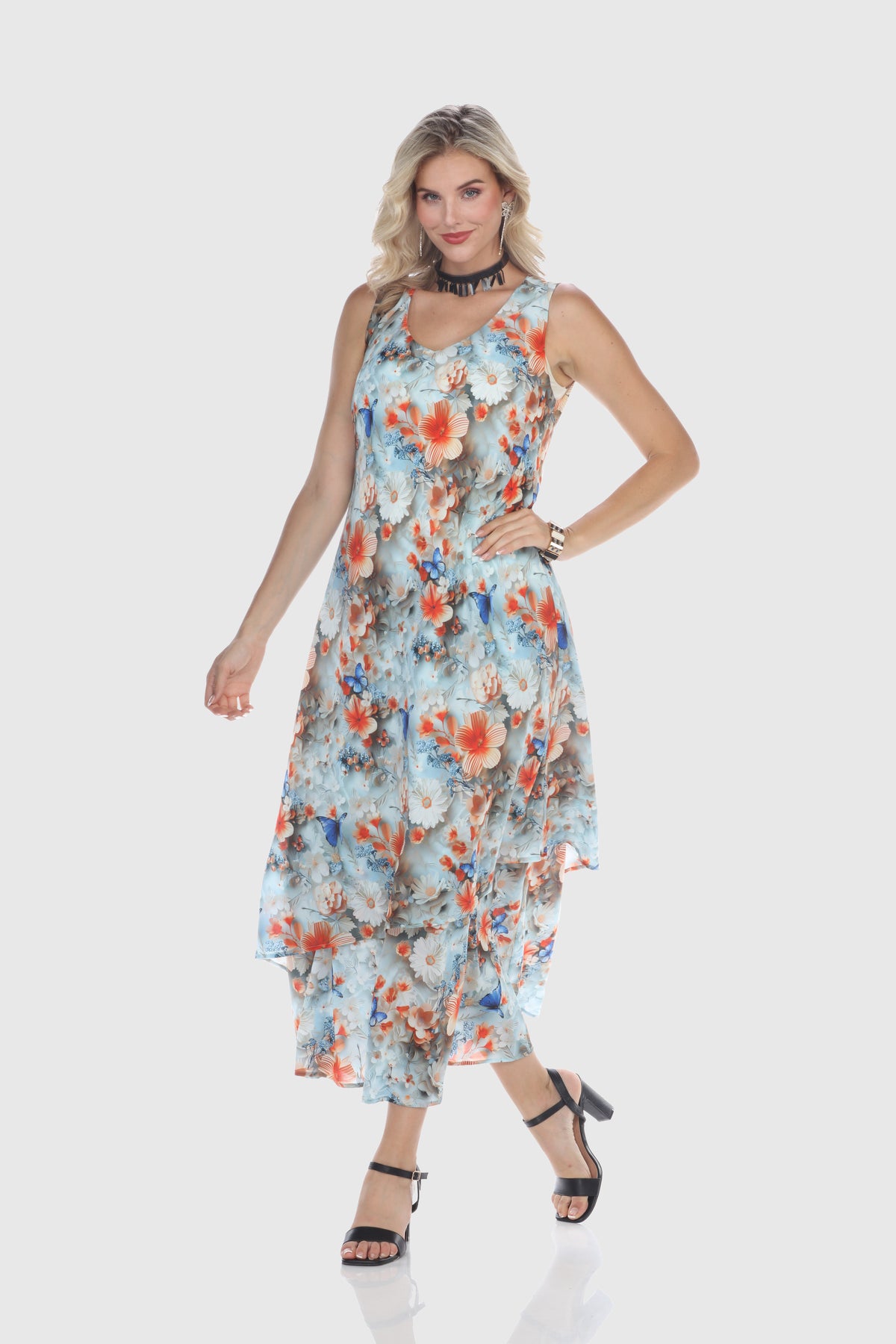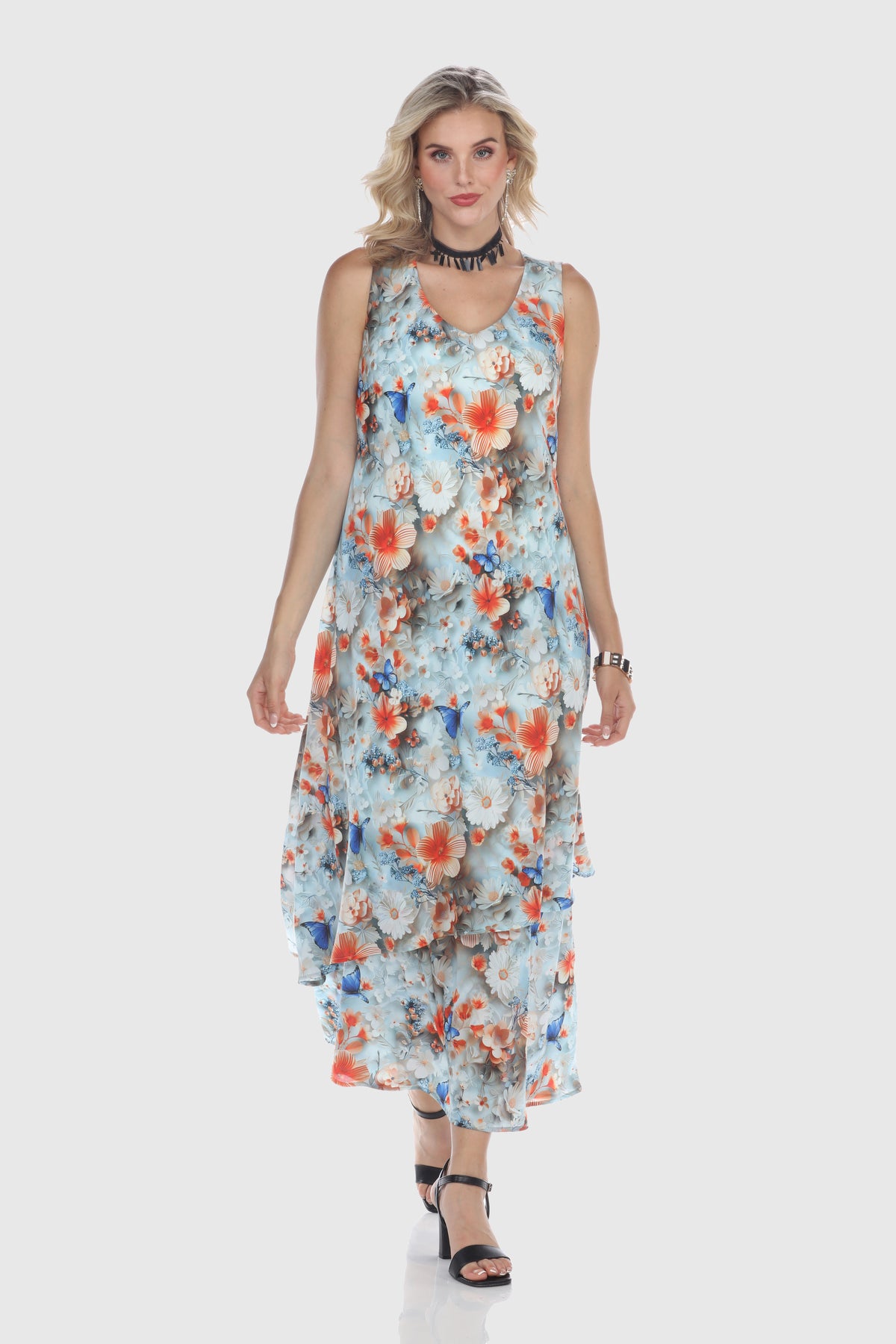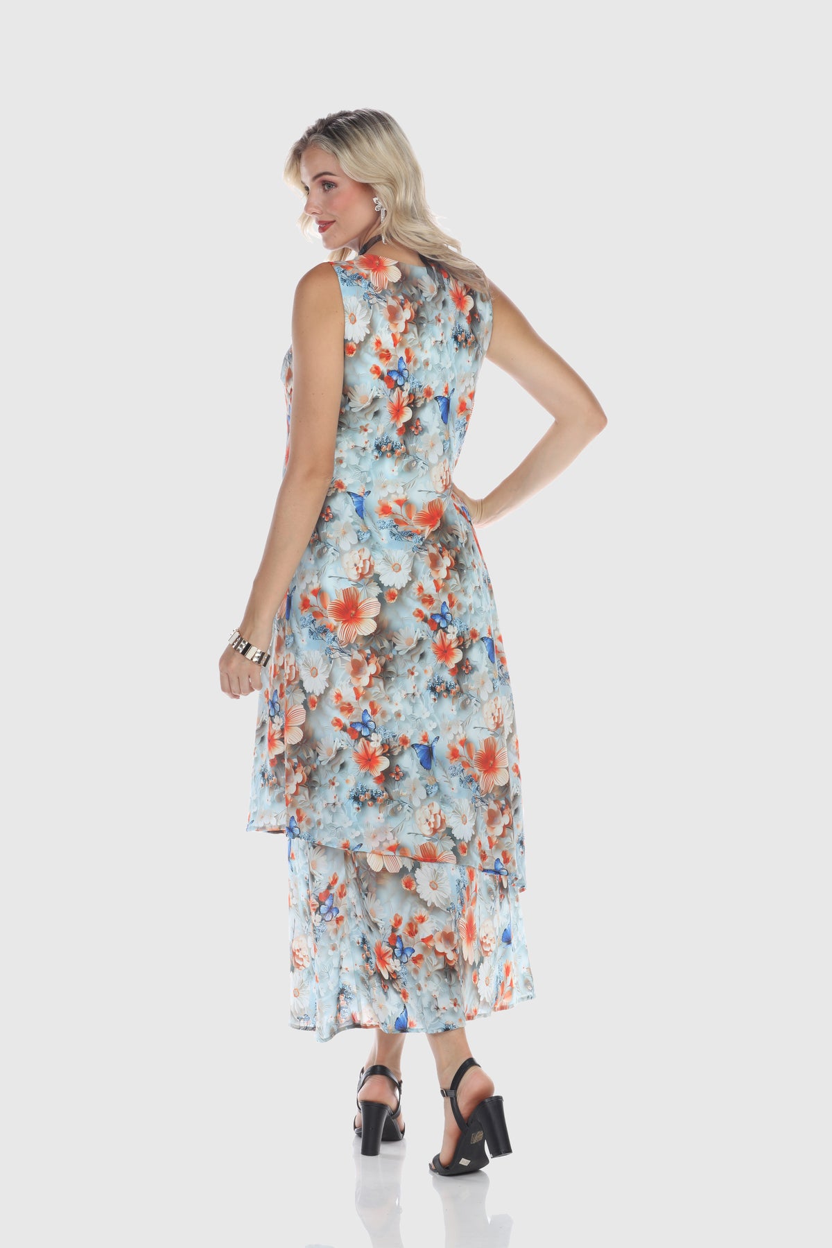 The Tropical Breeze Layered Maxi Dress is a sleeveless floral dress made from 100% polyester. Featuring a round neck and layered silhouette, it’s perfect for warm weather and easy to care for with machine wash in cold water.