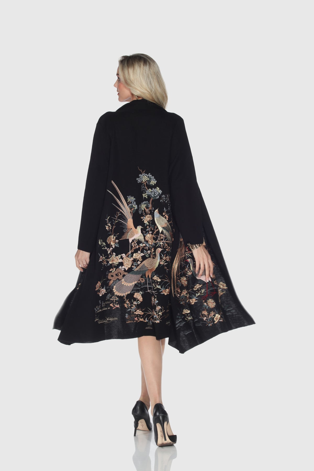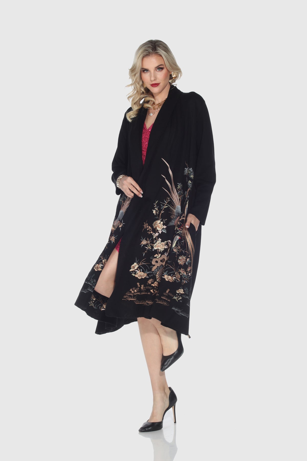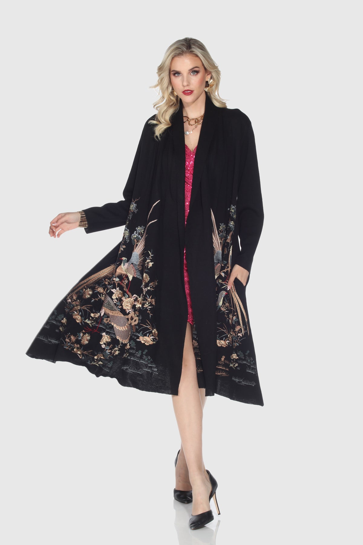 The Knit Dragon Embroidery Jacket is a unique and luxurious outerwear piece made from a blend of 70% acrylic fiber and 30% wool. It features intricate dragon embroidery, adding a bold, artistic touch. With full-length sleeves, an open front collar, and no button closure, this long jacket offers both style and comfort.
