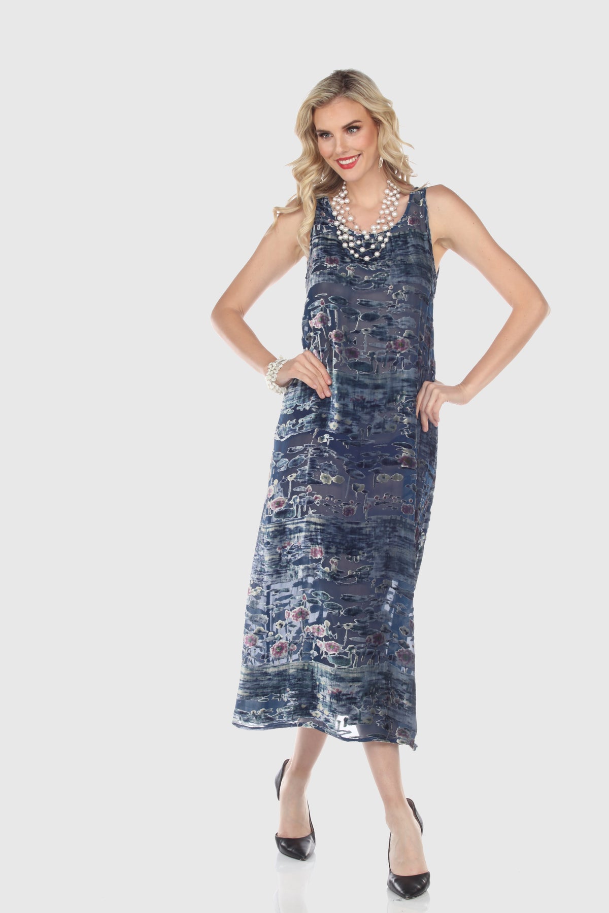 From the center back neckline, measure 15 inches straight down. At that point, measure straight across the dress from one side to the other. This flat width is your waist measurement (double for full body circumference).